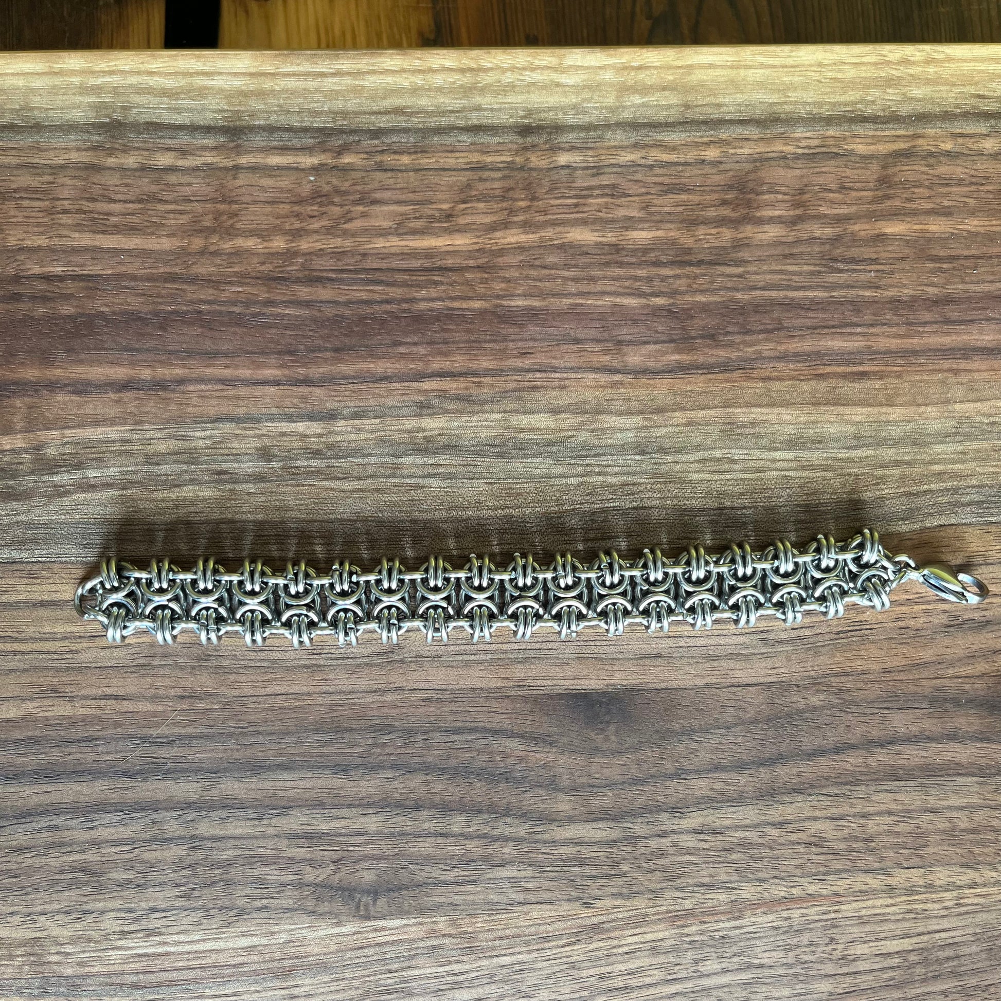 I honestly have no idea what this weave is actually called but its essentially formed like a normal byzantine but captured through the sides? Honestly though who cares it looks sick as hell sooo